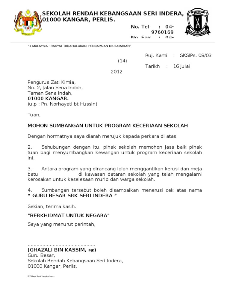 Persatuan ibubapa dan guru pibg sk jongok batu 23000 dungun terengganu tel. Surat memohon sumbangan anak yatim dan pelajar miskin. 16 contoh surat mohon sumbangan lawatan sambil belajar images.